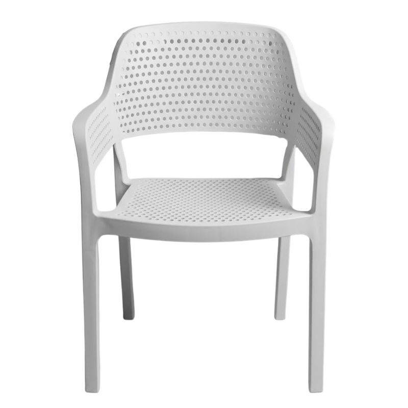 Plastová záhradná stolička Hawaii môže byť štýlovým a praktickým doplnkom každej terasy, balkóna alebo záhrady. Biela stolička je vyrobená z masívneho a odolného plastu, vďaka čomu výborne zvládne každodenné vonkajšie použitie. Jeho zvláštnosťou je hustá perforovaná konštrukcia, ktorá mu nielen dodáva moderný a ľahký vzhľad, ale zaisťuje aj vynikajúce vetranie počas horúcich letných dní. Pohodlné podrúčky a ergonomický tvar zvyšujú pocit komfortu, zatiaľ čo praktický stohovateľný dizajn uľahčuje úsporné skladovanie.