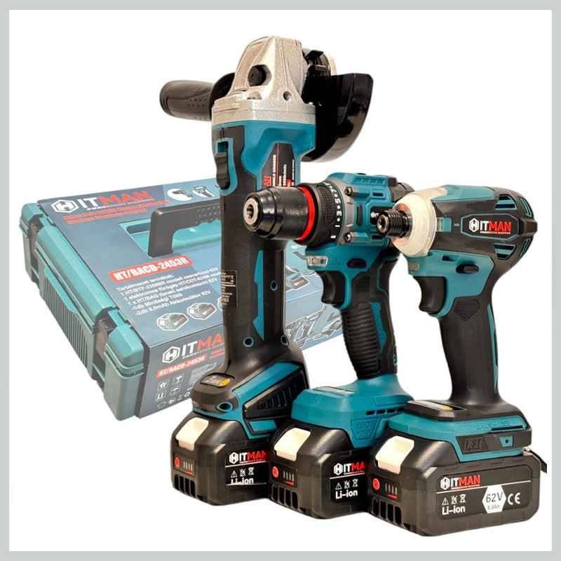 Hitman HT-BACD-2453R 3-dielna profesionálna sada akumulátorového náradia, 62 V (Supamaster SM-1038)