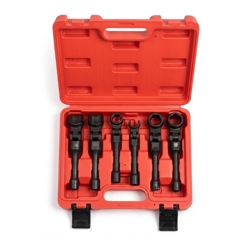 Špeciálne navrhnutá 6-dielna sada kľúčov, určená na montáž palivových vysokotlakových hadíc (injektorových vedení) dieselových motorov. Hlavy kľúčov sú otvorené (rozrezané), čo umožňuje jednoduché nasadenie na hadicu a prístup k matici. Kĺbový (flexibilný) krk umožňuje prácu aj v najtesnejších motorových priestoroch, kde pevné kľúče nedosiahnu.