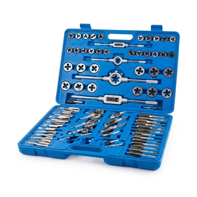 Hitman HA-1371 je rozsiahla 110-dielna sada určená na tvorbu vnútorných a vonkajších závitov, ako aj na opravu poškodených závitov. Obsahuje najpoužívanejšie metrické rozmery od jemných (M2) až po väčšie priemery (M18). Nevyhnutná výbava pre autoservisy, zámočnícke práce a údržbu strojov.