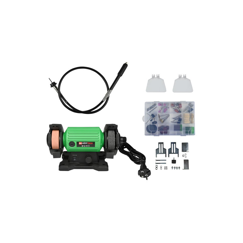 Táto multifunkčná elektrická brúska a ostrička Hofftech je vďaka svojmu kompaktnému dizajnu a širokej súprave príslušenstva ideálna pre domácich majstrov a hobby používateľov. Ľahko sa používa na ostrenie, brúsenie, leštenie a menšie opravy. Priložené príslušenstvo a flexibilný hriadeľ umožňujú precíznu prácu.