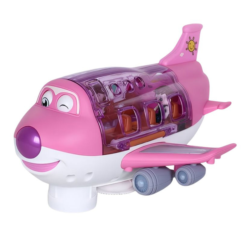 Očarujúce interaktívne lietadlo v pastelovo ružovej farbe s fialovým nosom a usmievavou tvárou, ktoré je perfektnou voľbou pre malých fanúšikov lietania. Interaktívne funkcie a farebný dizajn zaujmú deti na dlhé hodiny.