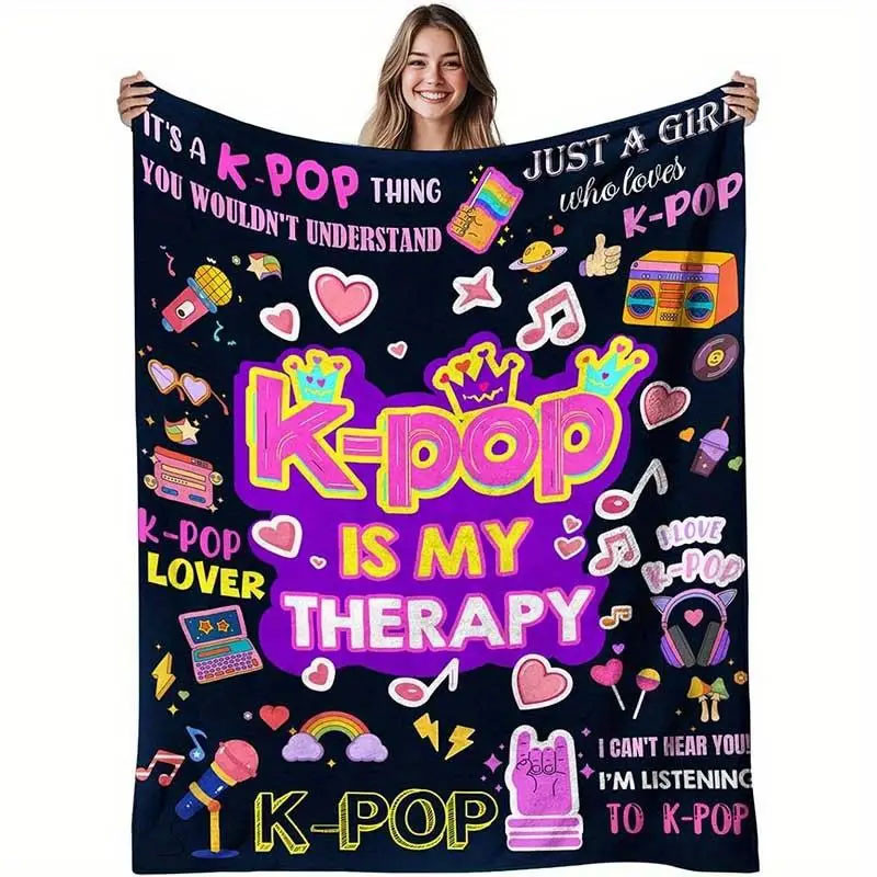 Vstúpte do sveta K-popu s touto štýlovou fanúšikovskou dekou, ktorá nesie ikonické motívy a atmosféru vášho obľúbeného kórejského hudobného štýlu. Mäkká deka z flanelového a fleecového materiálu je ideálna na sledovanie filmov, ako prehoz na pohovku v obývačke alebo aj ako dekorácia do spálne.