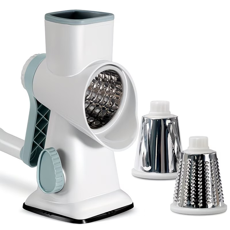 Prístroj je vybavený viacerými vymeniteľnými vložkami z nehrdzavejúcej ocele, ktoré sa dajú použiť na rôzne úlohy krájania a strúhania. Je ideálny na strúhanie syra, krájanie zeleniny, spracovanie zemiakov alebo dokonca na rýchlu prípravu šalátov.