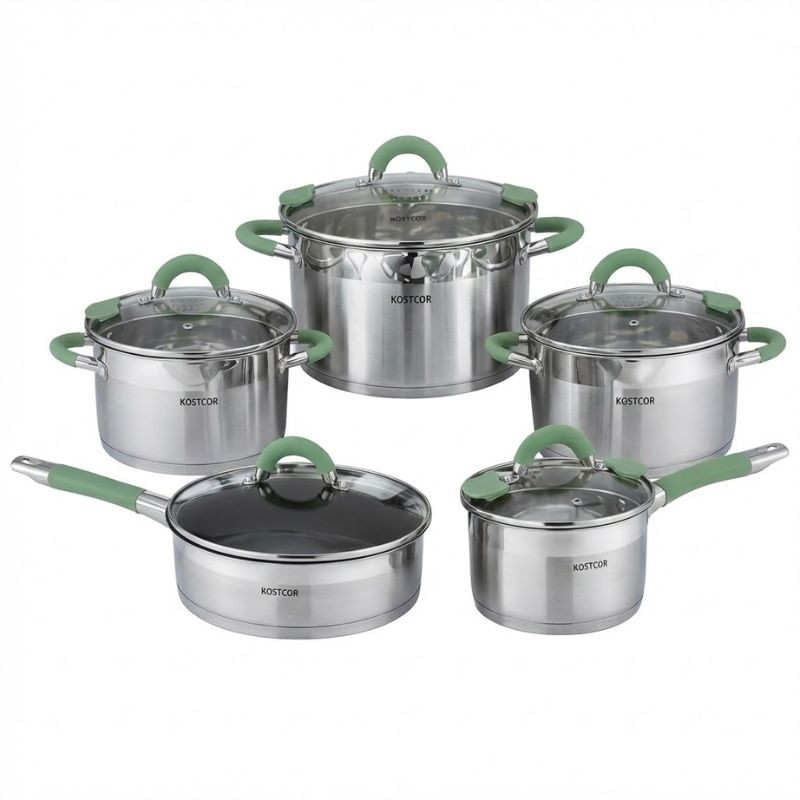 KOSTCOR 5-dielna Prémiová Sada Nerezového Riadu – pastelovo zelené úchyty K007