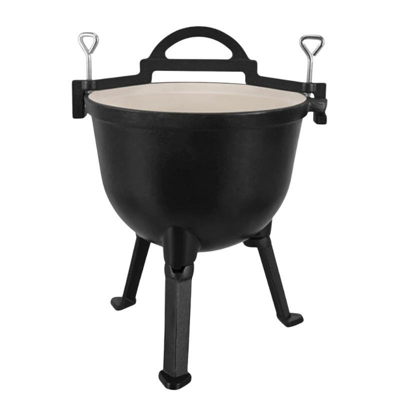 Masívna a spoľahlivá voľba pre varenie vonku. Liatinový kotlík Kaminer je ideálny na táborák, varenie v kotlíku alebo grilovanie v záhrade, kde je dôležité rovnomerné rozloženie tepla a odolná konštrukcia. Smaltovaný vnútorný povrch uľahčuje čistenie a znižuje riziko pripálenia, vďaka čomu je varenie jednoduchšie a pohodlnejšie.