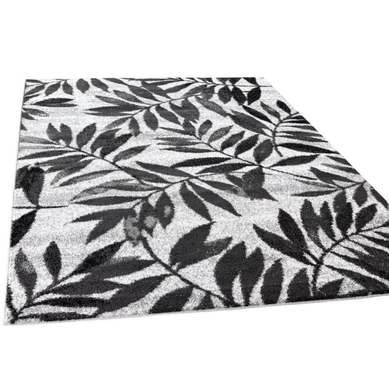 Koberec Torino 5128 – sivý, s listovým vzorom, 80 x 150 cm