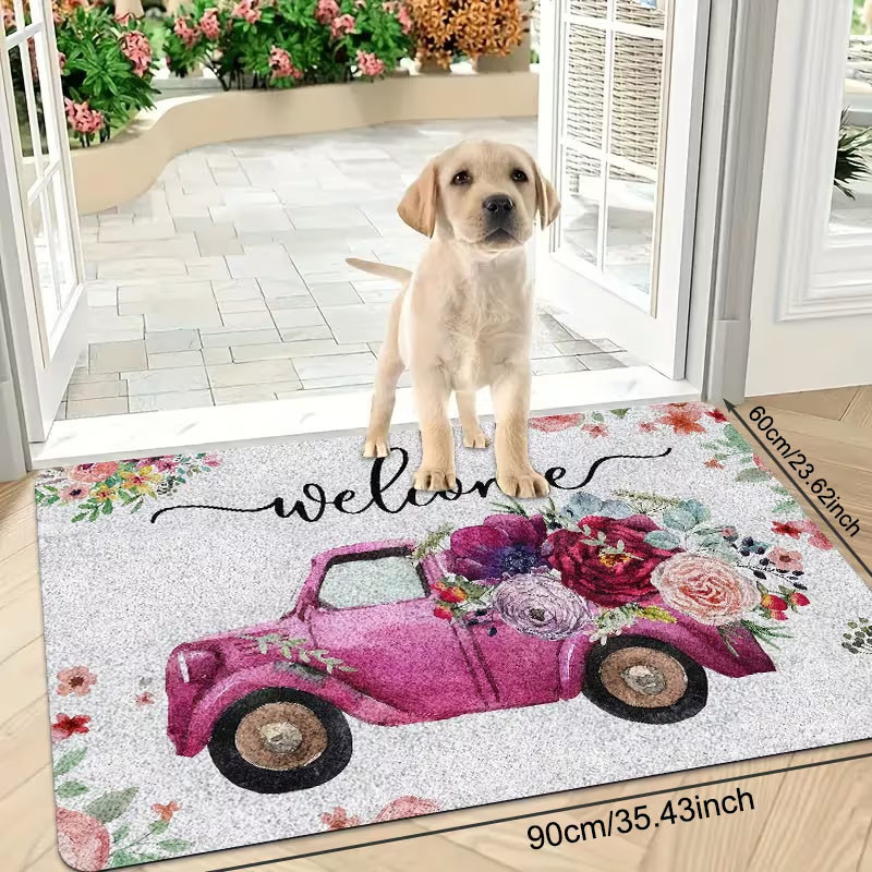 Koberec s vintage motívom auta a ružovej ruže 60 x 90 cm AV7577638-6090