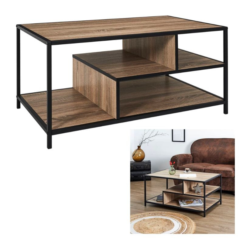 - Dizajn stolíka je minimalistický, kombinácia čierneho kovového rámu a povrchov v svetlej farbe dreva mu dodáva moderný, čistý vzhľad, ktorý sa ľahko hodí do rôznych štýlov interiérov.