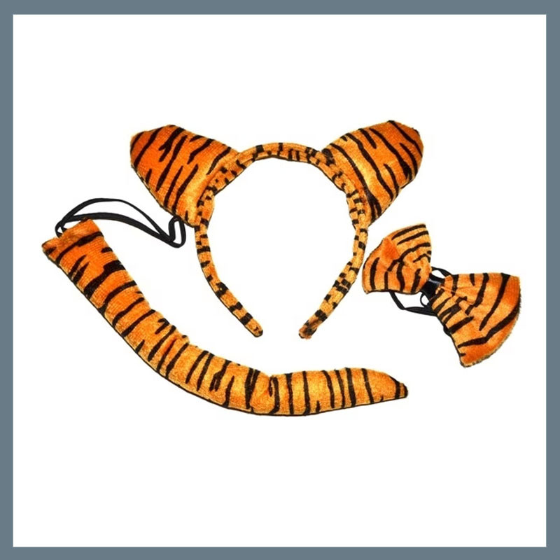 1 čelenka s tigrovým vzorom 1 chvost s tigrovým vzorom 1 motýlik s tigrovým vzorom