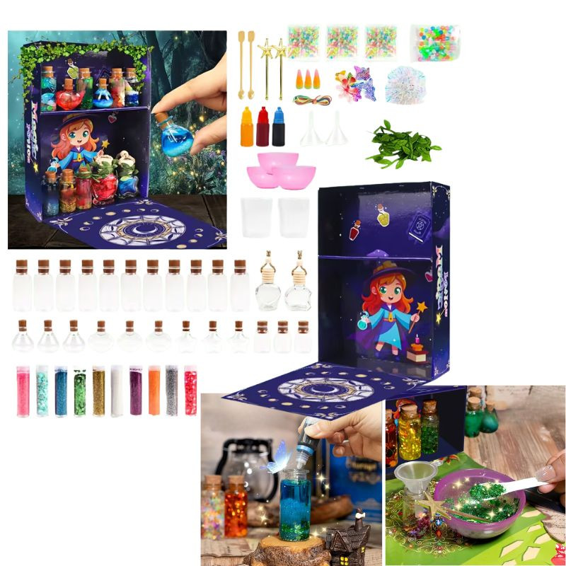 Kúzelný kreatívny zážitok pre deti, kde sa fantázia spája s hravým tvorivým vyrábaním. V sade nájdete 22 mini fliašok rôznych veľkostí a tvarov, do ktorých môžete pomocou priložených farebných práškov, trblietok a dekorácií vytvárať vlastné čarovné elixíry. Ideálne na kreatívne dielničky, narodeninové oslavy alebo ako darček.