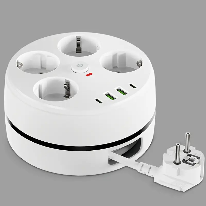 Tento kompaktný rozbočovač s kruhovým dizajnom je praktickým riešením do domácnosti, kancelárie aj na cestovanie. Má štyri sieťové zásuvky a tri USB nabíjacie porty, vďaka čomu umožňuje bezpečné a rýchle nabíjanie viacerých zariadení naraz.