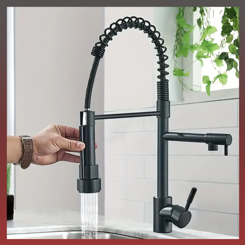 Kuchynský drezový batériový kohútik so sprchovou hlavicou, čierny LW809534