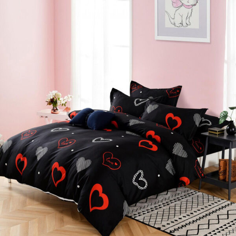 Kvetinová 3-dielna súprava posteľnej prikrývky – čierna