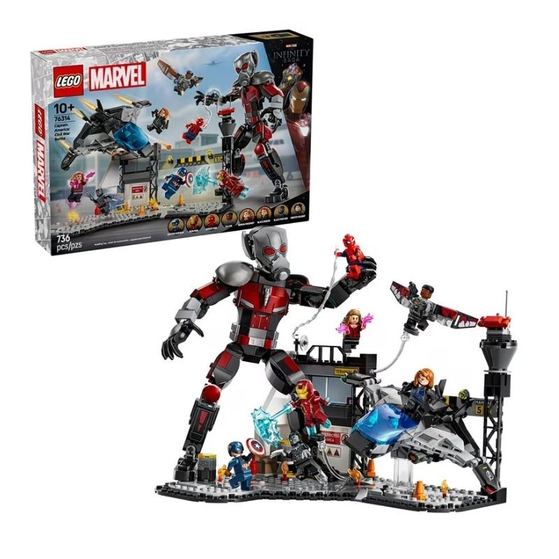 Táto veľká, akčná stavebnica LEGO Marvel je skutočnou pastvou pre oči fanúšikov superhrdinov. V centre scény stojí obrovská figúrka Ant-Mana, ktorú možno nastaviť do dynamických póz a ktorá umožňuje vytvárať úžasné bojové scény.