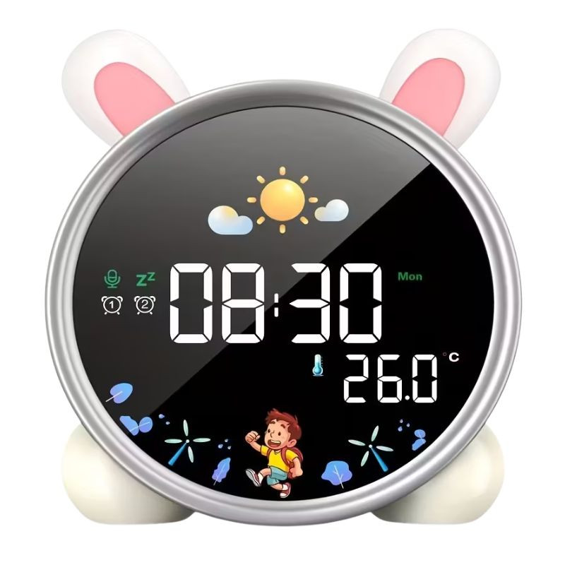 Budík Lemnoi je vďaka veselému kreslenému vzhľadu a moderným funkciám ideálnou voľbou do detskej izby. Okrúhly dizajn so zvieracími uškami je milým doplnkom, pričom digitálny displej a nastaviteľný jas z neho robia praktické a ľahko ovládateľné zariadenie. Nabíjateľná lítiová batéria a USB nabíjanie zabezpečujú pohodlné a ekologické používanie.