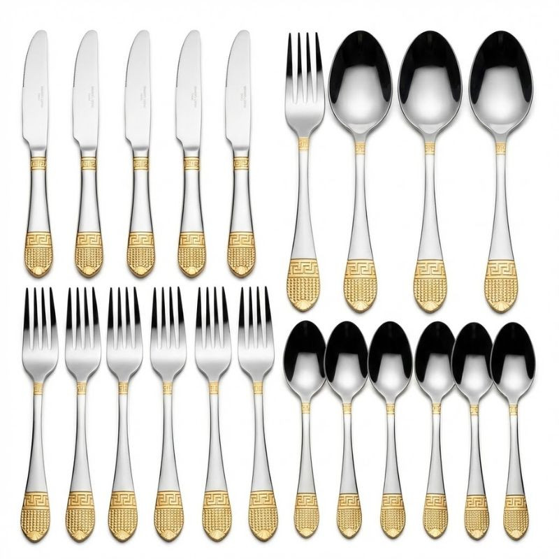 Nádherná zlatá výzdoba: Rúčky príborov sú pokryté bohatým vzorom a 24-karátovým zlatým povlakom, ktorý vyžaruje starožitnú eleganciu.