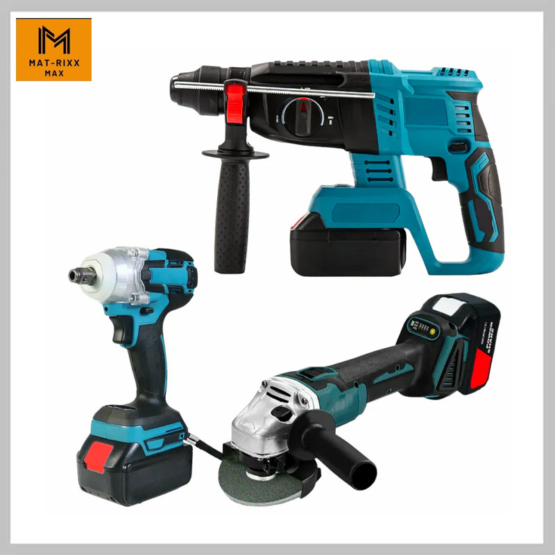 Objav novú dimenziu komplexného vykonávania prác s 3-dielnou súpravou náradia MAT-RIXX MAX, ktorá obsahuje 26 mm elektrický kladivo, 350 N.m elektrický rázový utahovač a 8000 RPM uhlovú brúsku.