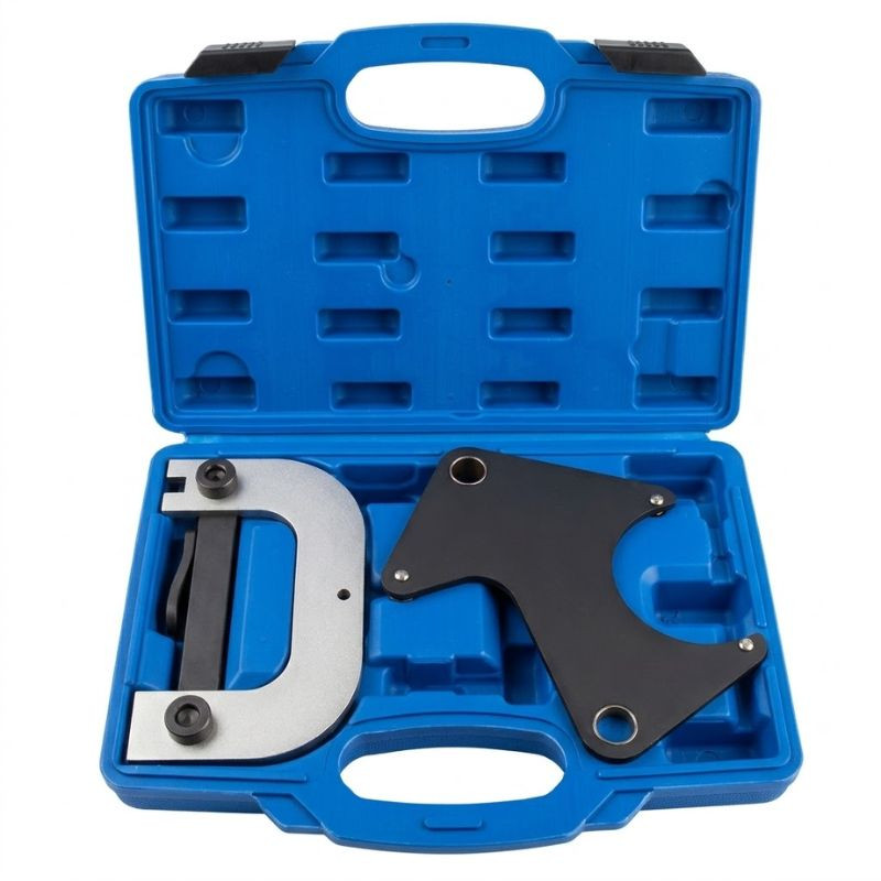 Táto profesionálna sada náradia je nevyhnutným nástrojom na presné upevnenie a nastavenie riadenia motora vozidiel, napríklad pri výmene rozvodového remeňa. Nástroje sú uložené v praktickej a pevnej taške, ktorá uľahčuje skladovanie a prepravu.