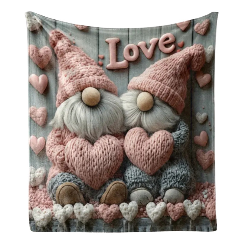 Milá mäkká deka so škriatkovým motívom, ktorá vytvára romantickú a útulnú atmosféru. Vzor so srdiečkami v ružových a sivých odtieňoch robí z deky nielen praktický, ale aj dekoratívny doplnok do domácnosti.