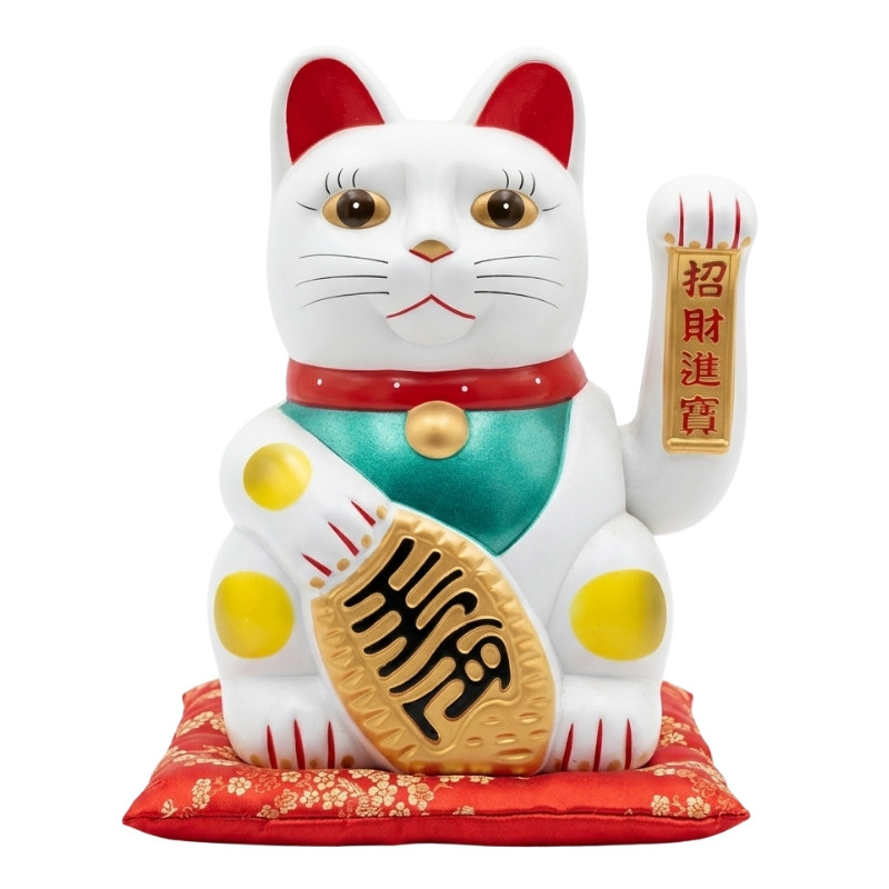 Veselá a pútavá dekoratívna figúrka, ktorá podľa tradície priťahuje šťastie, hojnosť a hostí. Mačka v štýle maneki neko s charakteristickou mávajúcou labkou je symbolom priťahovania pozitívnej energie a finančného blahobytu.