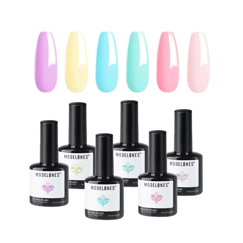 Modelones Premium jarno-letná sada pastelových gélových lakov – 6 krásnych odtieňov holm20087