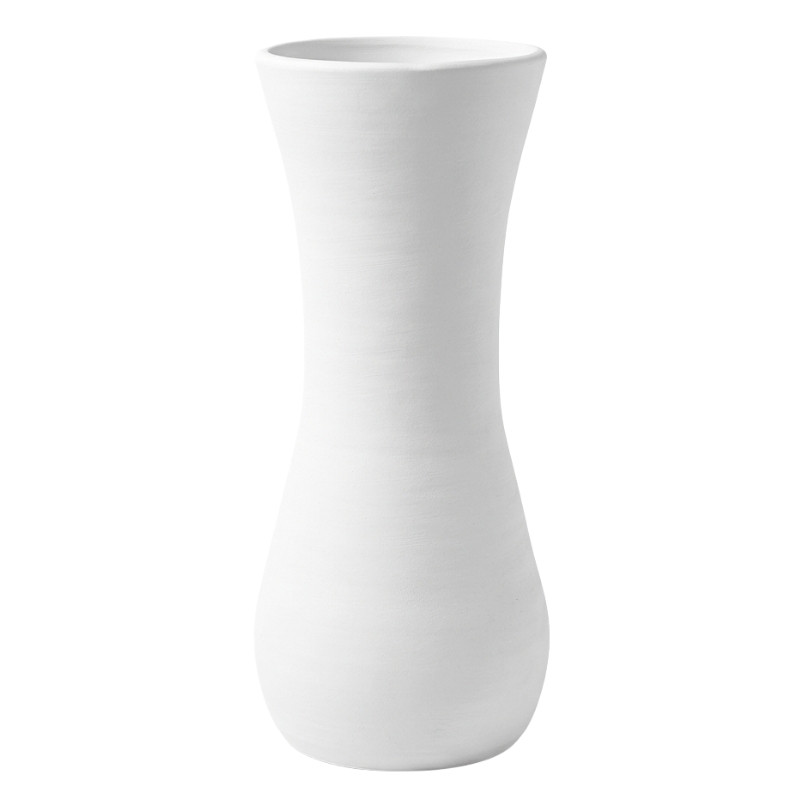 Keramická váza s čistým a elegantným vzhľadom, ktorá svojím jedinečným tvarom pripomínajúcim presýpacie hodiny okamžite upúta pozornosť. Jemne textúrovaný povrch a jednoduchá biela farba vytvárajú moderný, minimalistický dojem.