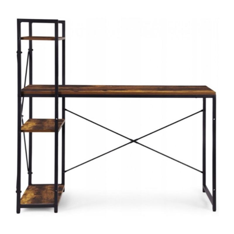 Moderný loftový písací stôl s integrovaným policovým systémom 120 × 60 cm – Hnedá/Čierna STL24BR