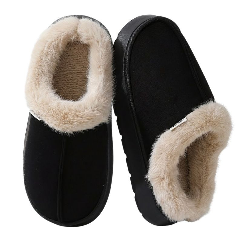 Módne dámske papuče s plyšovou podšívkou, čierne – hrubá EVA podrážka XV3628746-6 >Farba: čierna