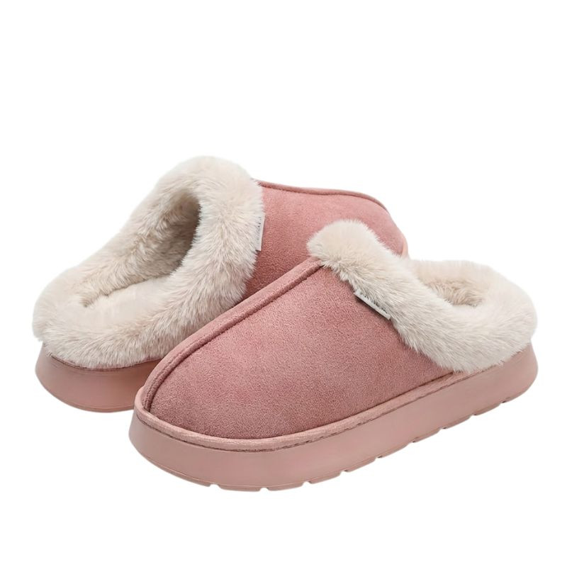 Módne dámske papuče s plyšovou podšívkou, ružové – hrubá EVA podrážka XV3628746-3 >Farba: ružová