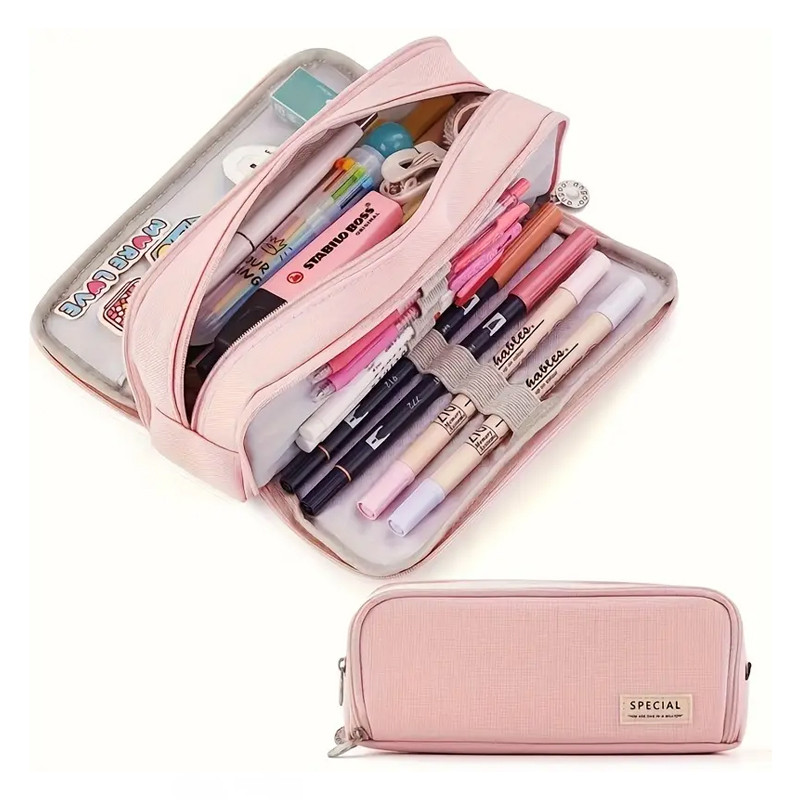 Módne viacvrstvové puzdro na ceruzky s dvojitým priestorom, ružové DK1514948-P