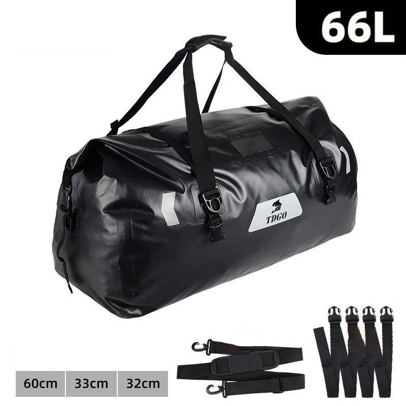 Vodoodolná motocyklová cestovná taška TDGO s objemom 65 litrov je výbornou voľbou na dlhé trasy aj do náročných podmienok. Odolný materiál s PVC povrchovou úpravou poskytuje spoľahlivú ochranu pred dažďom, blatom, vetrom a prachom, pričom veľká kapacita ponúka dostatok miesta na moto oblečenie, prilbu, čižmy a ďalšiu výbavu.