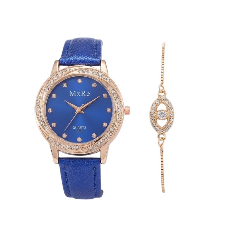 MxRe „Midnight Blue“ Dámske hodinky a náramok – darčeková súprava – Kráľovská modrá/Rose Gold MR01KRG