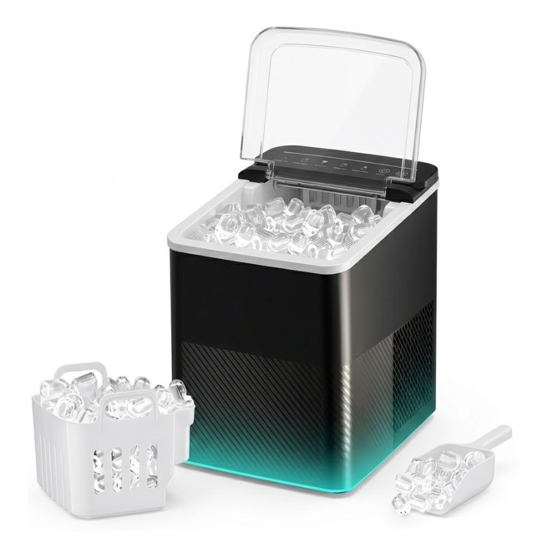 Tento kompaktný a moderný výrobník ľadu je ideálnou voľbou pre použitie doma, v kancelárii alebo aj na párty. Vďaka rýchlej prevádzke dokáže vyrobiť 9 kociek ľadu za púhych 5 minút, takže budete mať vždy po ruke čerstvý ľad do nápojov.