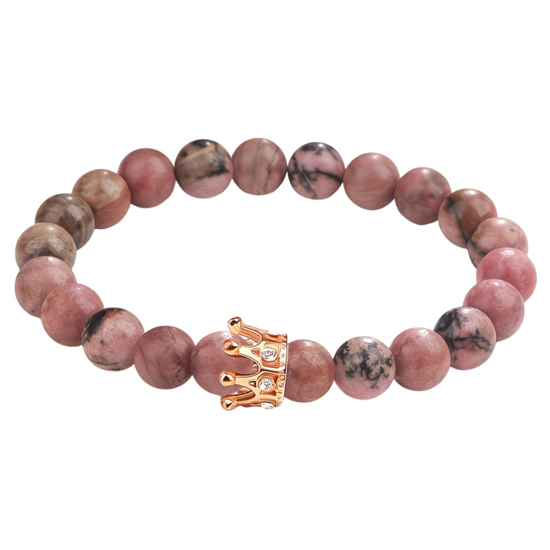 Tento elegantný náramok z kameňov v červených odtieňoch je výnimočným darčekom pre každú mamičku. Harmonický farebný prechod jemne vyleštených korálok zaisťuje ženský a rafinovaný vzhľad, zatiaľ čo zlatá korunka umiestnená uprostred je symbolom lásky a úcty.