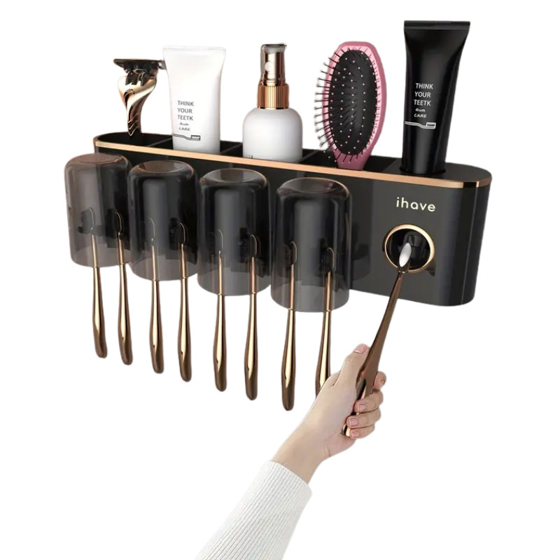 Nástenný držiak na zubné kefky s dávkovačom zubnej pasty veľký čierny LH13115-6