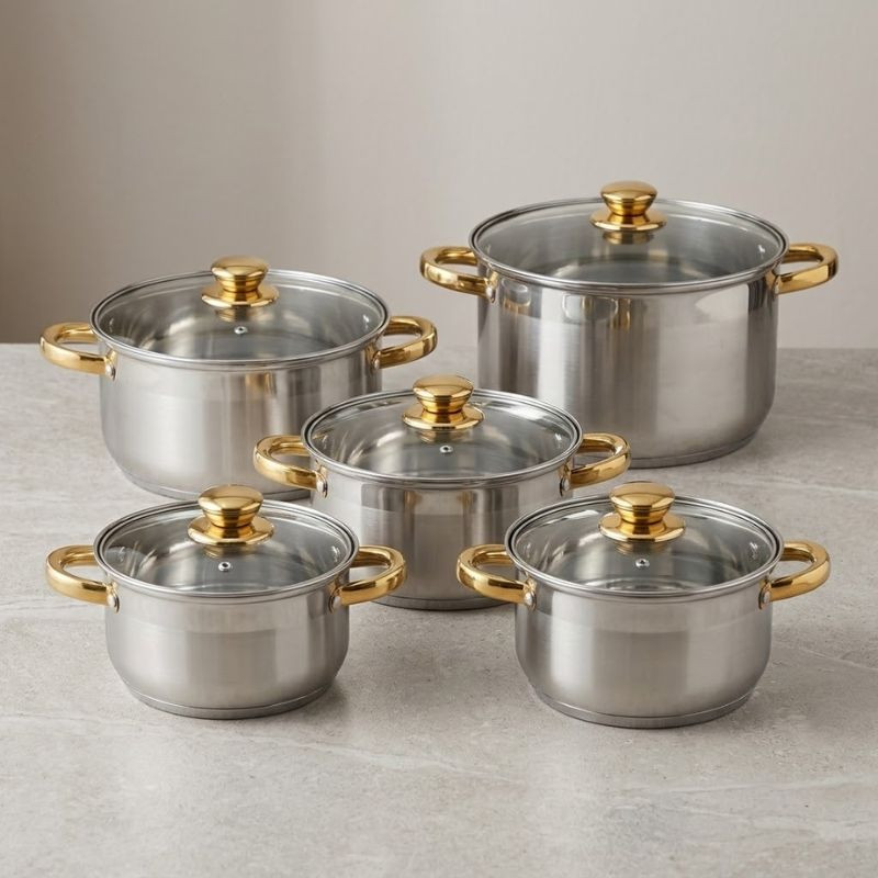 Sada obsahuje 5 nádob rôznych veľkostí so sklenenými pokrievkami, vďaka čomu je vhodná na rôzne úlohy pri varení.
