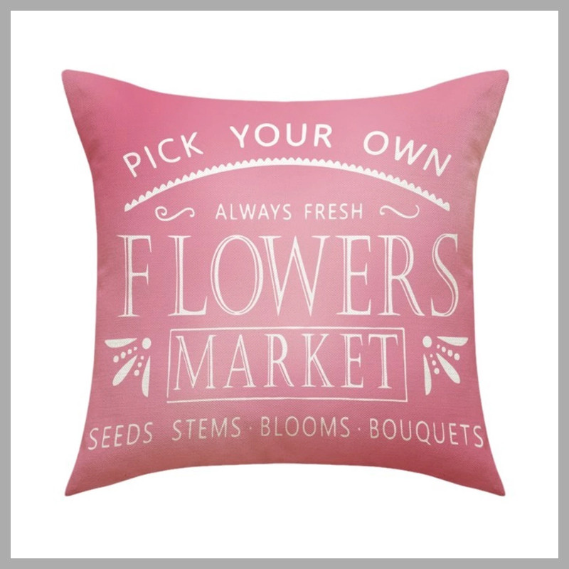 Obliečka na vankúš 45 x 45 cm s nápisom "FLOWERS MARKET" POD159