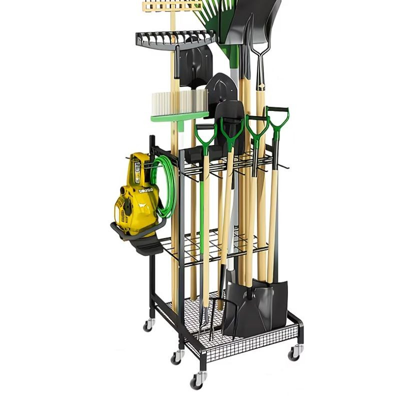Odolný oceľový regál na záhradné náradie – s kolieskami, mobilné vyhotovenie 58M145K45G-K