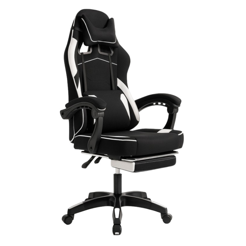 Pohodlná a univerzálna herná stolička určená na dlhodobé hranie, prácu alebo relax. Ergonomický dizajn, nastaviteľné operadlo, výsuvná opierka nôh a bedrový vankúš s masážnou funkciou zaisťujú pohodlné sedenie a relaxáciu.