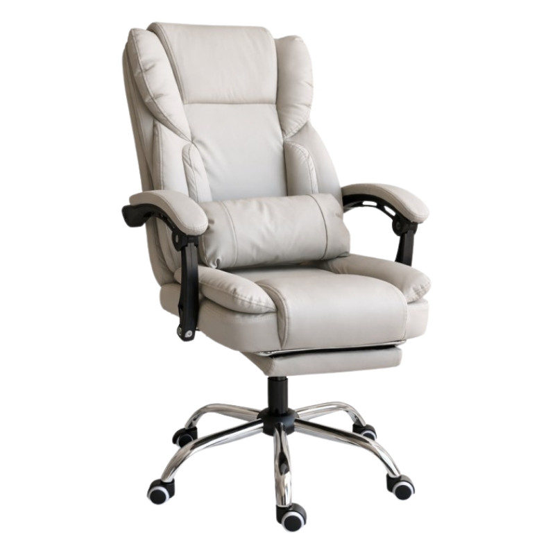 Elegantná a pohodlná otočná kancelárska stolička, ideálna pre domáce kancelárie aj pracovné prostredia. Široké sedadlo, nastaviteľné operadlo a výsuvná opierka nôh zaručujú vysoký komfort pri dlhodobej práci alebo odpočinku.