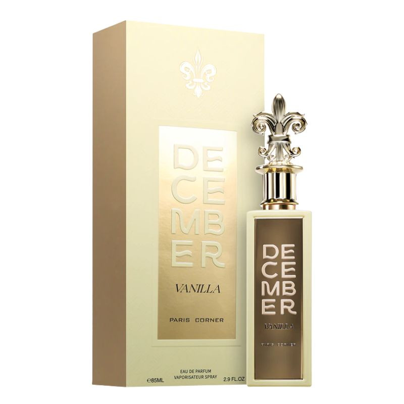 Paris Corner December Vanilla je okúzľujúca a bohatá vôňová kompozícia. V úvode sa stretáva zvodný rum, výnimočná vanilková orchidea a jemný jazmín, čím vytvárajú mimoriadne príťažlivý a lákavý zážitok. V srdci vône sa preplietajú krémová crème brûlée a jemná sladkosť vanilky, ktoré dotvárajú pikantné koreniny a teplé tonkové bôby. Toto komplexné, lákavé srdce dopĺňajú tóny jemnej kože a klasickej ruže, ktoré parfému dodávajú neporovnateľnú hĺbku a eleganciu. V závere sa rozvinie sladká a tajomná základná nota: hnedý cukor a zemitá pačuli sa miešajú s exotickým agarovým drevom (oud), zmyselným pižmom a teplým ambrovým drevom, zanechávajúc na pokožke dlhotrvajúci, nezabudnuteľný dojem.