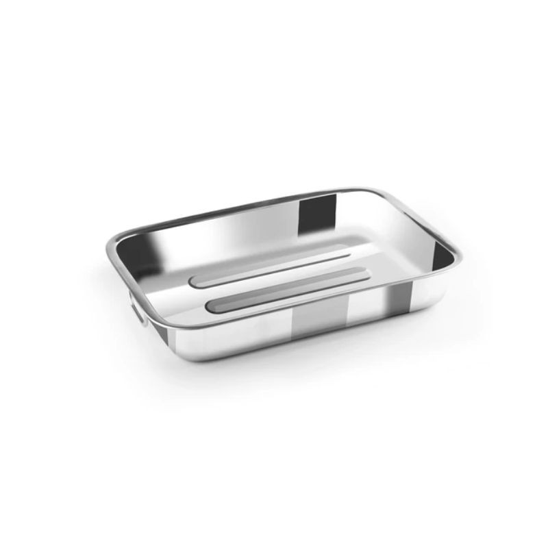 Tento pečiaci plech Perfect Home z nehrdzavejúcej ocele je praktický a nevyhnutný kuchynský nástroj, ideálny na pečenie mäsa, zeleniny a koláčov. Plech s rozmermi 32 x 24 cm je vyrobený z vysoko kvalitnej nerezovej ocele, ktorá zaručuje dlhú životnosť a ľahké čistenie. Jeho špeciálnou vlastnosťou je vstavaná mriežka uprostred plechu, ktorá odvádza tuk a šťavu, aby sa mäso nevarilo, ale pieklo do chrumkava.