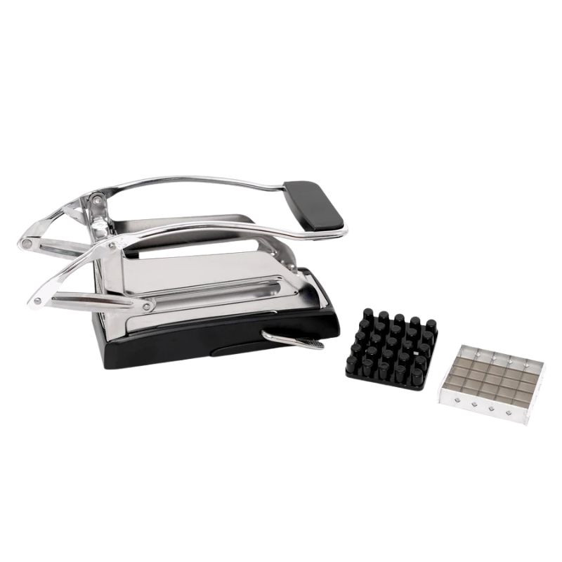 Používanie zariadenia je mimoriadne jednoduché a bezpečné: stačí zdvihnúť páčku, vložiť ošúpané zemiaky a potom jedným rozhodným pohybom stlačiť zariadenie. V balení nájdete aj dve rezacie hlavice rôznych veľkostí, takže si môžete vybrať podľa svojho vkusu medzi tenšími, chrumkavejšími alebo hrubšími, mäkšími hranolkami.