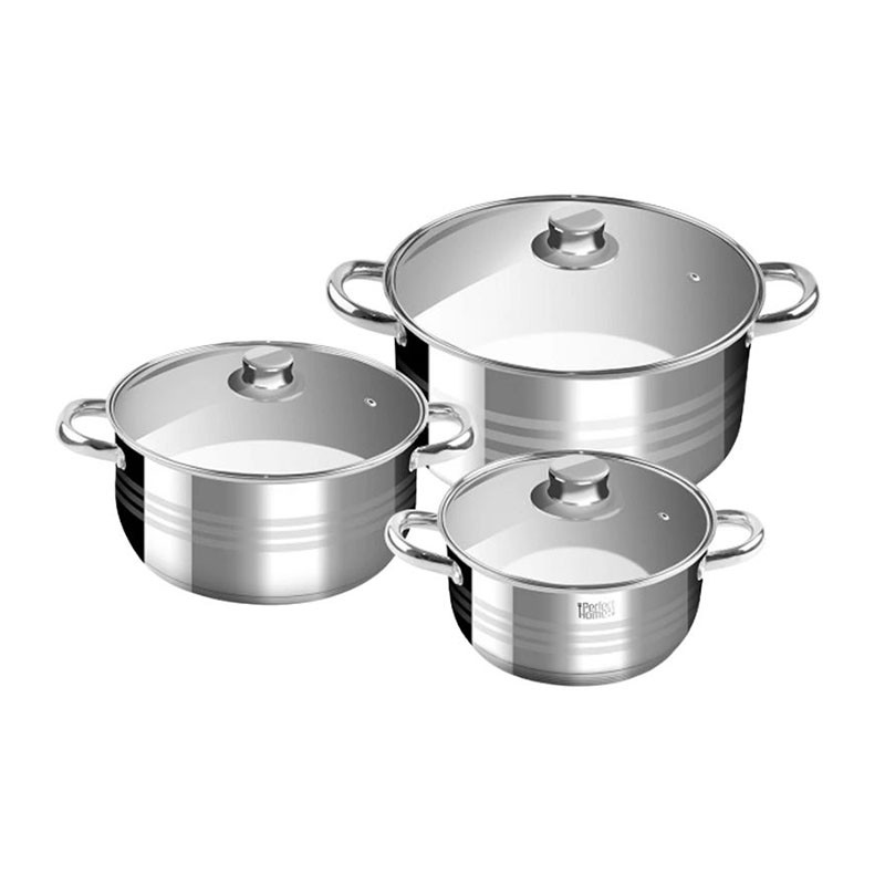 Perfect Home nerezová sada hrncov je vysoko kvalitná, odolná a praktická voľba na každodenné varenie. Sada obsahuje tri rôzne veľkosti kastrólov s príslušnými sklenenými pokrievkami, takže je ideálna na prípravu menších aj väčších porcií jedál.