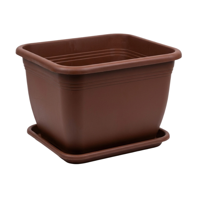 Plastový kvetináč s podložkou v hnedom vyhotovení MVCS2