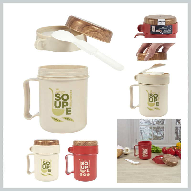 Plastový pohár na polievku s viečkom a lyžičkou KA0363