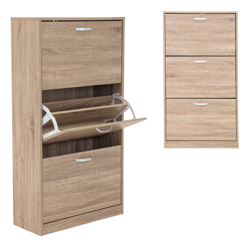 Tri samostatné, sklopné úložné priestory umožňujú systematické usporiadanie rôznych typov obuvi – športovej, elegantnej či na vysokých podpätkoch. Uzavretá konštrukcia chráni obuv pred prachom a zároveň zaisťuje čistý vzhľad predsiene.