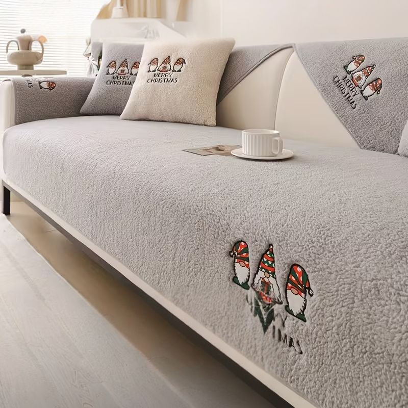 Vianočný plyšový, nešmykľavý poťah na pohovku s motívom Santa Clausa. Vyrobený z hustej, mäkké fleecovej tkaniny, vhodný pre domáce zvieratá a odolný proti opotrebeniu. Poťah je zdobený vyšívanými vianočnými motívmi, je prateľný, ľahko sa nasadzuje a má nešmykľavý povrch. Ideálny do obývacej izby, kancelárie alebo hosťovskej izby.