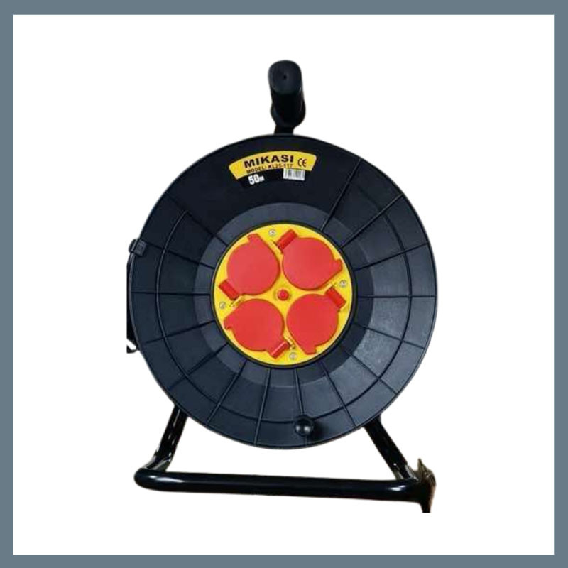 MIKASI KL25-117 je pevný a spoľahlivý 50-metrový predlžovací kábel, dodávaný na praktickom navijaku pre ľahké navíjanie a skladovanie. Je zvlášť odporúčaný pre situácie, kde je potrebné preklenúť väčšie vzdialenosti, napríklad na staveniskách, pri záhradníckych prácach alebo na podujatiach. Predlžovací kábel má 4 uzemnené zásuvky, je vybavený bezpečnostným krytom a je namontovaný na pevnom kovovom ráme.